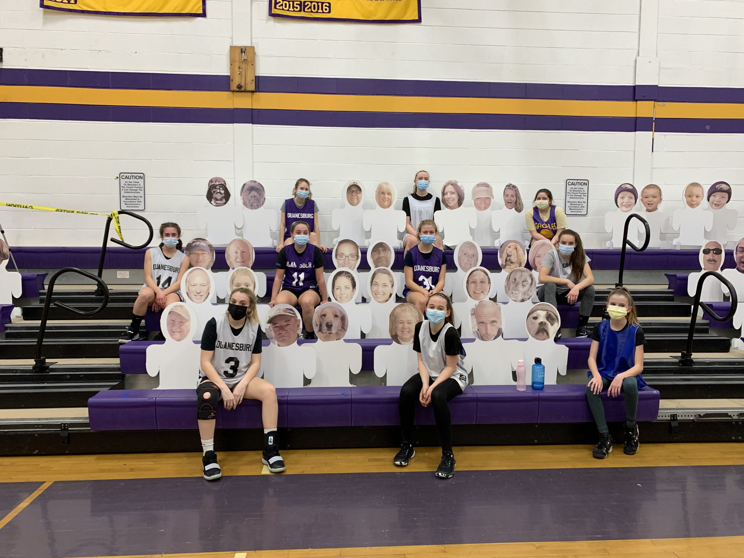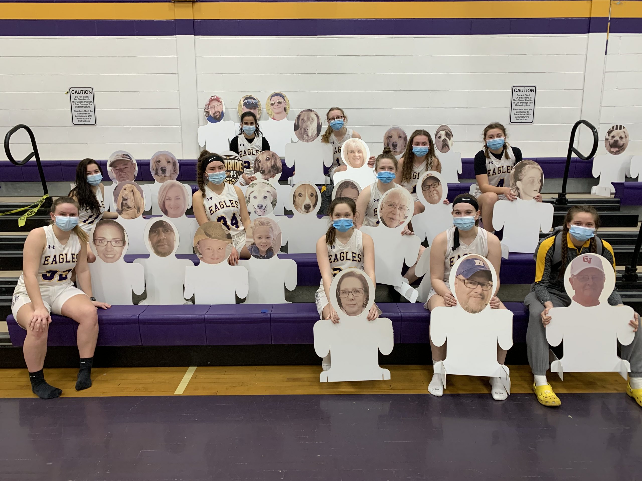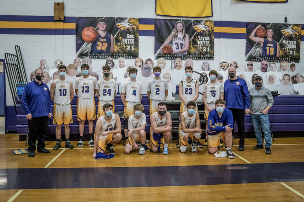 The DCS Basketball Program turned an obstacle into an opportunity this season and raised money for charity in the process. Teams could not welcome in-person fans, so they instead livestreamed games and filled the stands with cardboard cutouts. Families and friends could make donations and get pictures of their faces placed on the cutouts. The teams raised $950 to benefit St. Jude Children Research Hospital. The teams would like to thank everyone who made a donation as well as technology teacher Michael Gauthier and art teacher Kevin DiTondo, who made the cutouts. The teams extend their sincere appreciation to the community for its support.