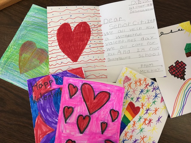 Duanesburg elementary students across grade levels made valentines this week for state Sen. Michelle Hinchey’s senior citizen card drive. The valentines will be given to nursing home residents across the 46th Senate District. DES was proud to participate in this important initiative to connect community members across generations.